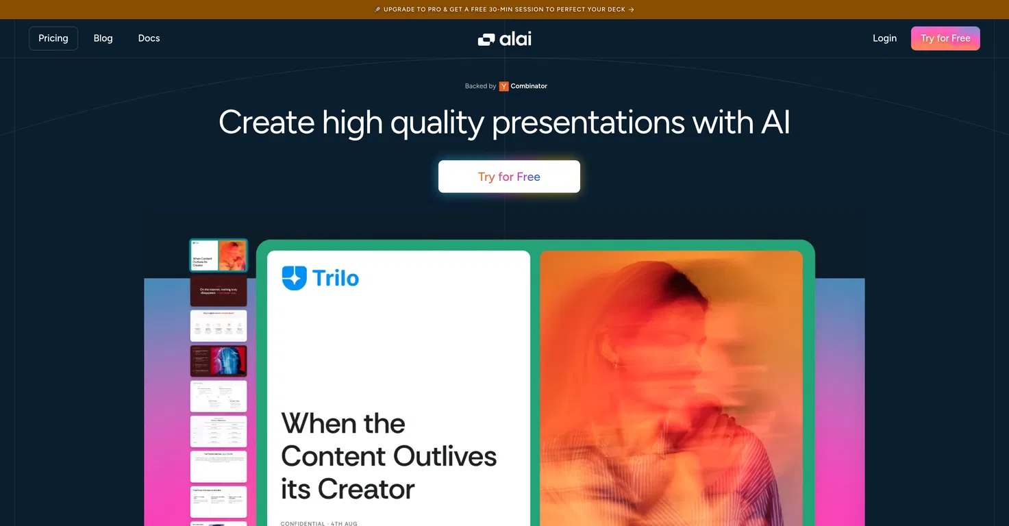 Alai — это инструмент для создания презентаций с помощью искусственного интеллекта, который помогает создавать высококачественные презентации.