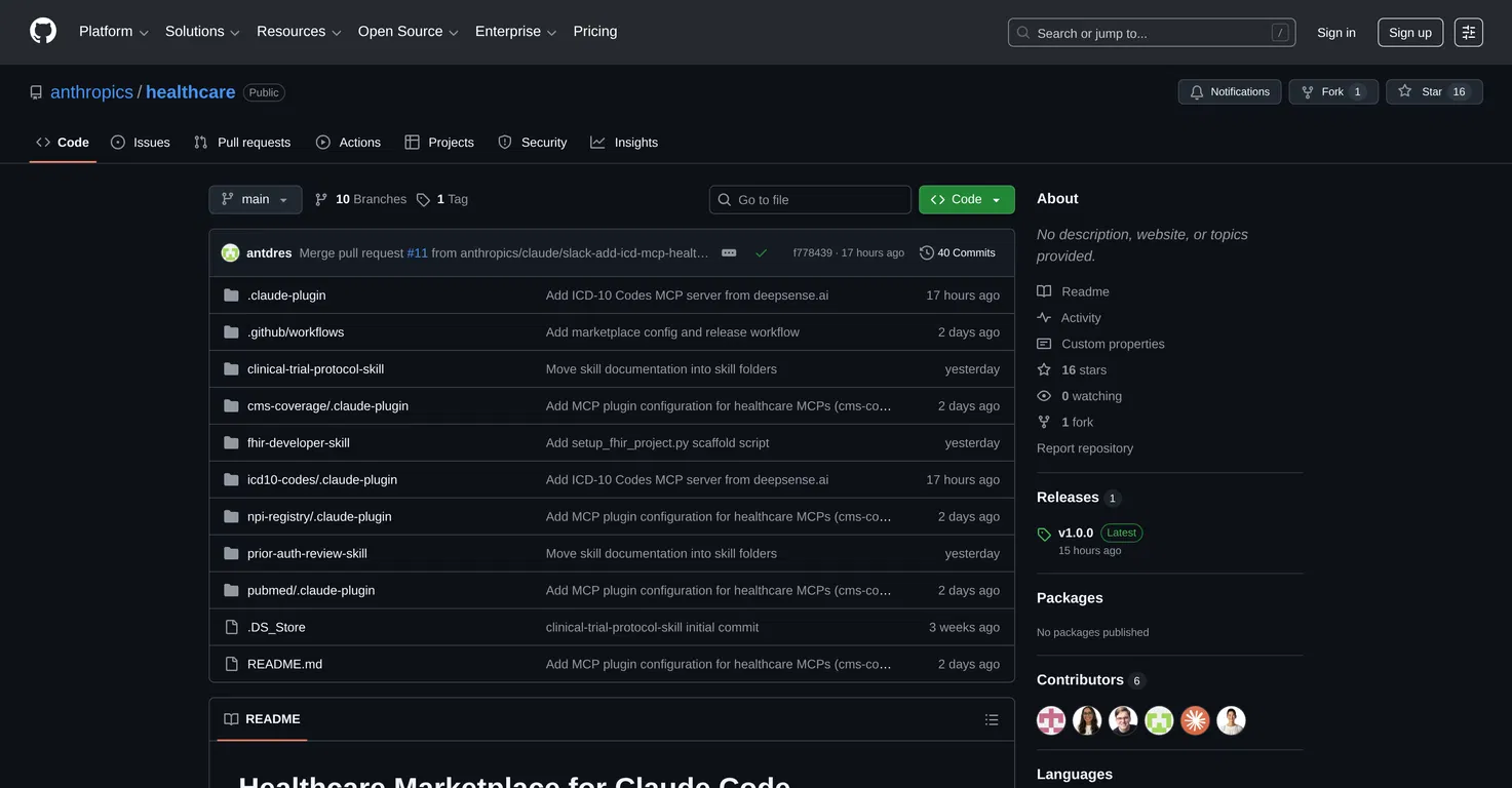 Anthropics/Healthcare, размещенный на GitHub, представляет собой набор навыков программирования, специально разработанных для рабочих процессов в сфере здравоохранения. Он включает в себя такие возможности, как разработка API Fast Healthcare Interoperability Resources (FHIR), управление протоколами клинических испытаний и проведение предварительных проверок авторизации.