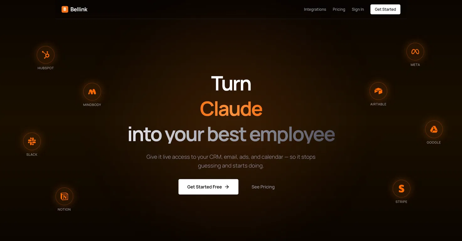 Интеграции включают HubSpot, Mindbody, Meta Ads, Google Calendar, Slack, Stripe и другие. Создан для сервисных компаний, которым нужен ИИ, работающий с живыми данными, а не скриншотами.