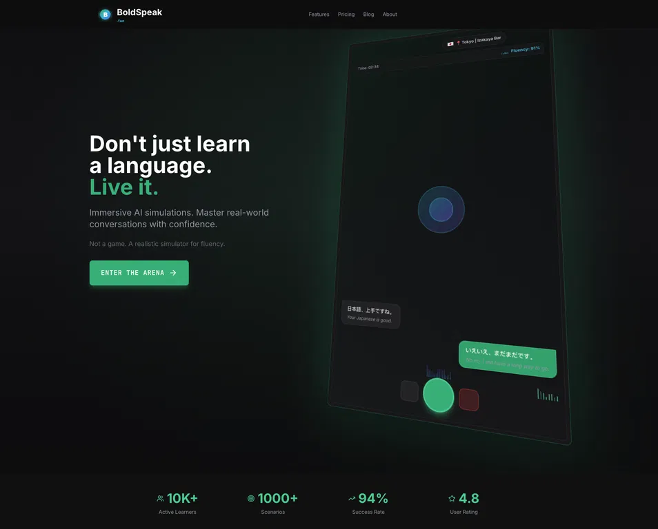BoldSpeak - это инструмент для языковой практики, в котором используются иммерсивные сценарии, управляемые искусственным интеллектом, чтобы помочь людям отточить свои языковые навыки. Он обеспечивает реалистичную и увлекательную среду для изучения языка, которая выходит за рамки стандартных приложений для изучения языка.