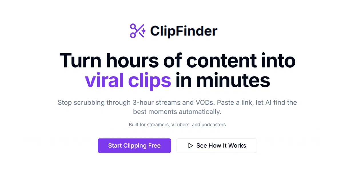 ClipFinder - это инструмент на базе искусственного интеллекта, созданный для стримеров, ютуберов и подкастеров, которым нужно найти подходящие для клипа моменты в длинном контенте. Вместо того чтобы вручную просматривать 3-5-часовые VOD, вставьте URL-адрес YouTube и позвольте искусственному интеллекту найти лучшие моменты.