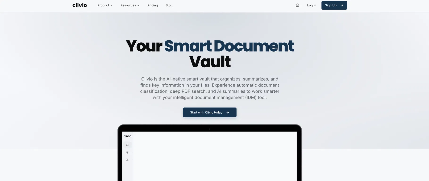 Clivio - это инструмент управления документами на базе искусственного интеллекта, призванный упростить работу пользователей с файлами. Выходя за рамки обычных решений для хранения документов, Clivio предлагает набор функций, облегчающих организацию, обобщение и поиск ключевой информации в PDF-файлах, сканах, заметках, счетах и многом другом.