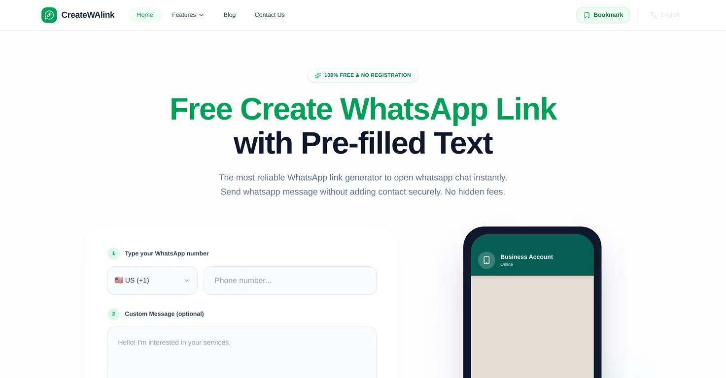 CreateWAlink - это инструмент, предназначенный для повышения вовлеченности клиентов путем создания ссылок на чат WhatsApp и QR-кодов. Он позволяет пользователям генерировать прямые ссылки на чат WhatsApp, которые можно использовать для отправки сообщений без необходимости сохранять контактные номера.