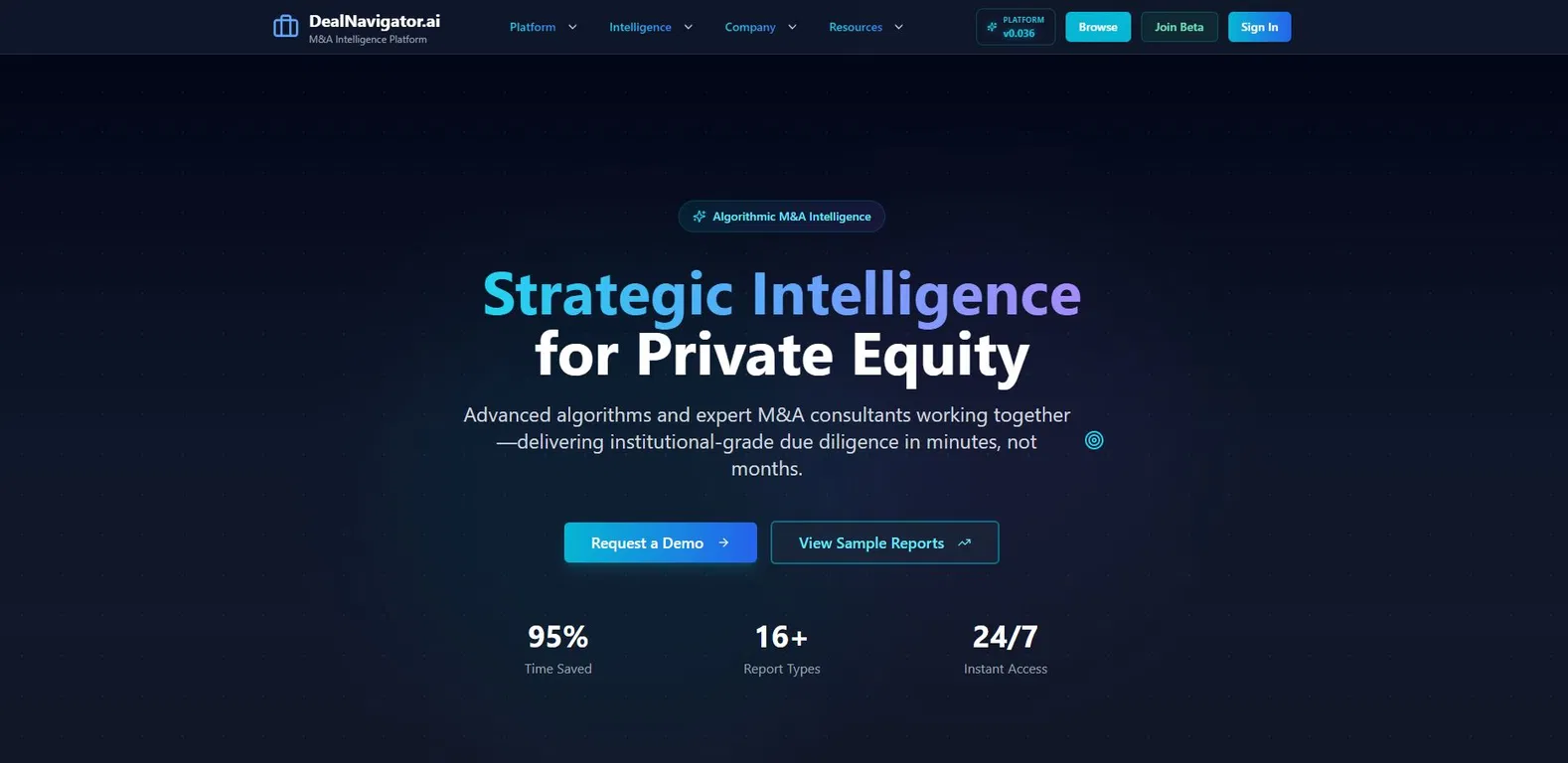 DealNavigator.ai — это комплексная платформа на базе искусственного интеллекта для поиска, оценки и управления сделками, предлагающая интегрированный набор передовых инструментов, разработанных для бизнес-покупателей, инвесторов и специалистов по слияниям и поглощениям.**