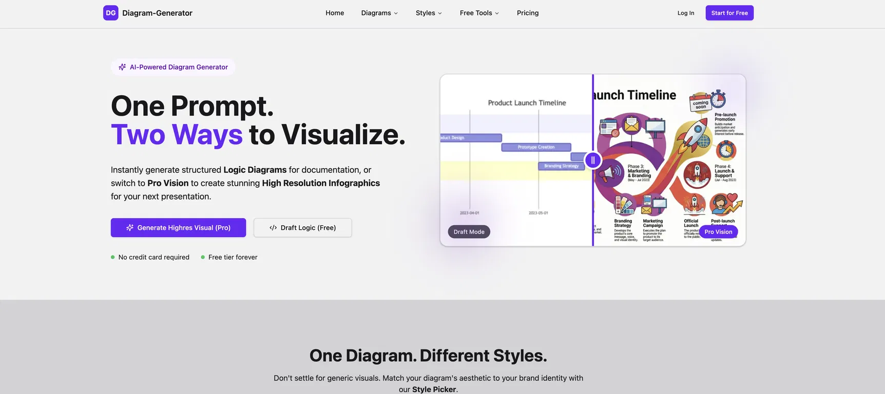 Он предлагает две основные функции: Logic Diagrams для структурированной документации и Pro Vision для создания инфографики высокого разрешения. Эти функции дают пользователям возможность создавать диаграммы в широком диапазоне стилей, позволяя визуально соответствовать эстетике любого бренда или презентации.