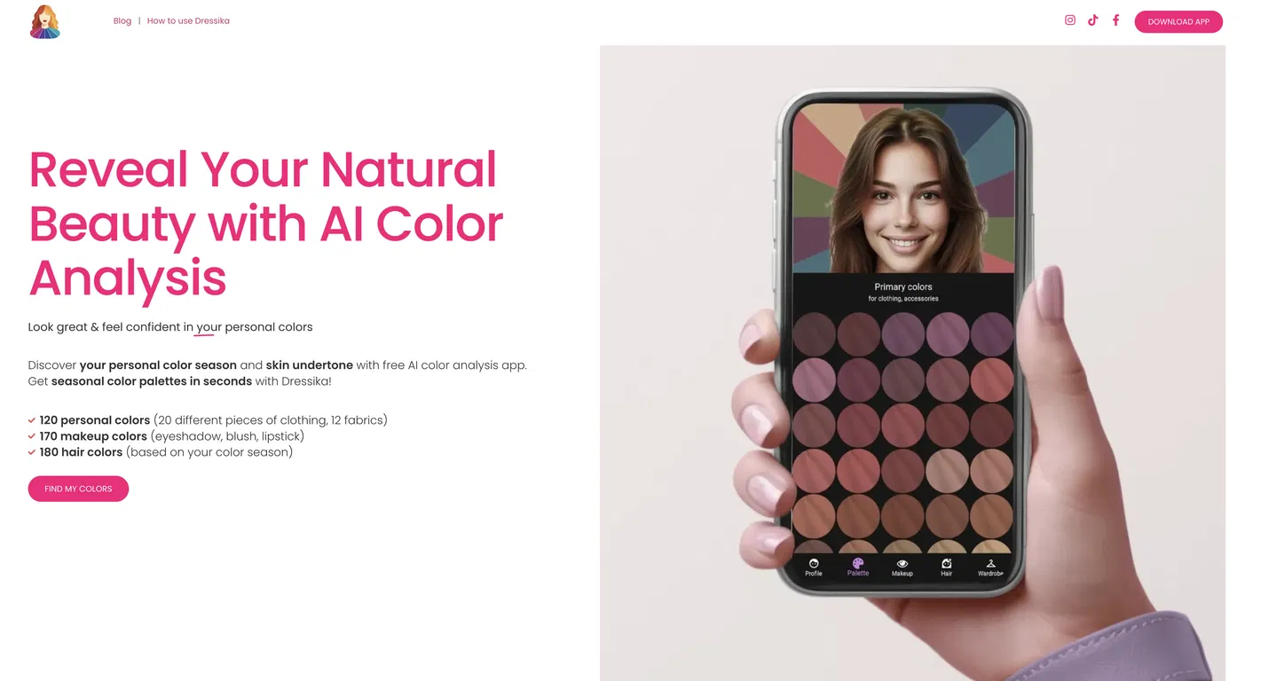 Dressika — это приложение для анализа цвета на базе искусственного интеллекта, разработанное, чтобы помочь пользователям найти и принять свои личные цвета. Инструмент использует искусственный интеллект для анализа фотографий пользователей и определения их цветового сезона и оттенков кожи на основе теории 12 цветовых сезонов.
