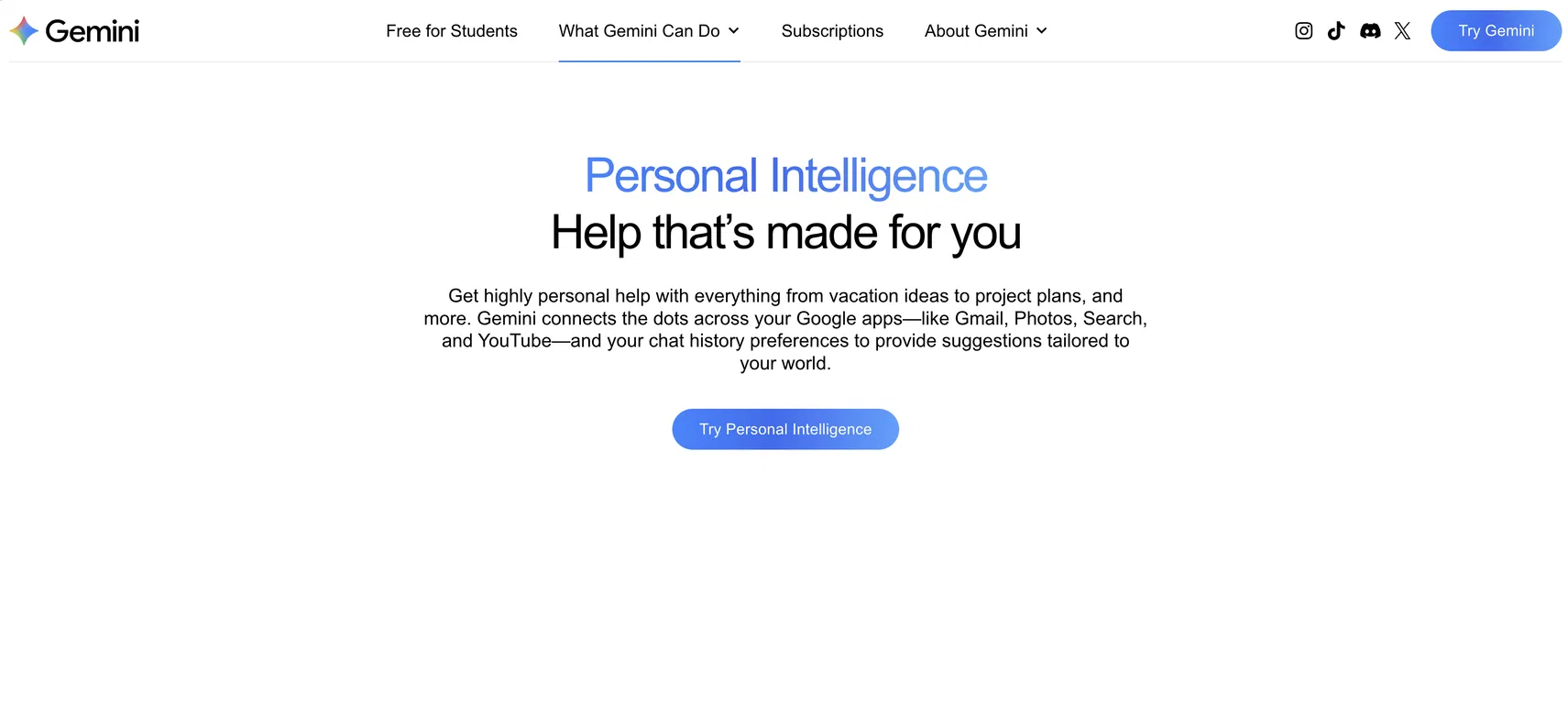 Gemini Personal Intelligence - это инструмент с поддержкой искусственного интеллекта, который обеспечивает персонализированную помощь, подключая несколько приложений Google, включая Gmail, Фото, Поиск и YouTube.