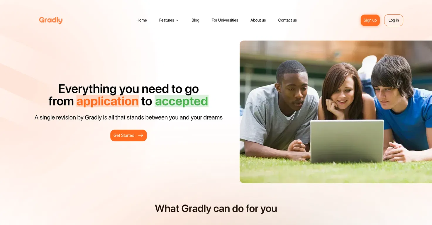 Платформа призвана помочь студентам оптимизировать свои шансы быть принятыми в учебные заведения их мечты. Алгоритм Gradly подстраивает генерируемые эссе под историю абитуриента, делая их максимально достоверными.