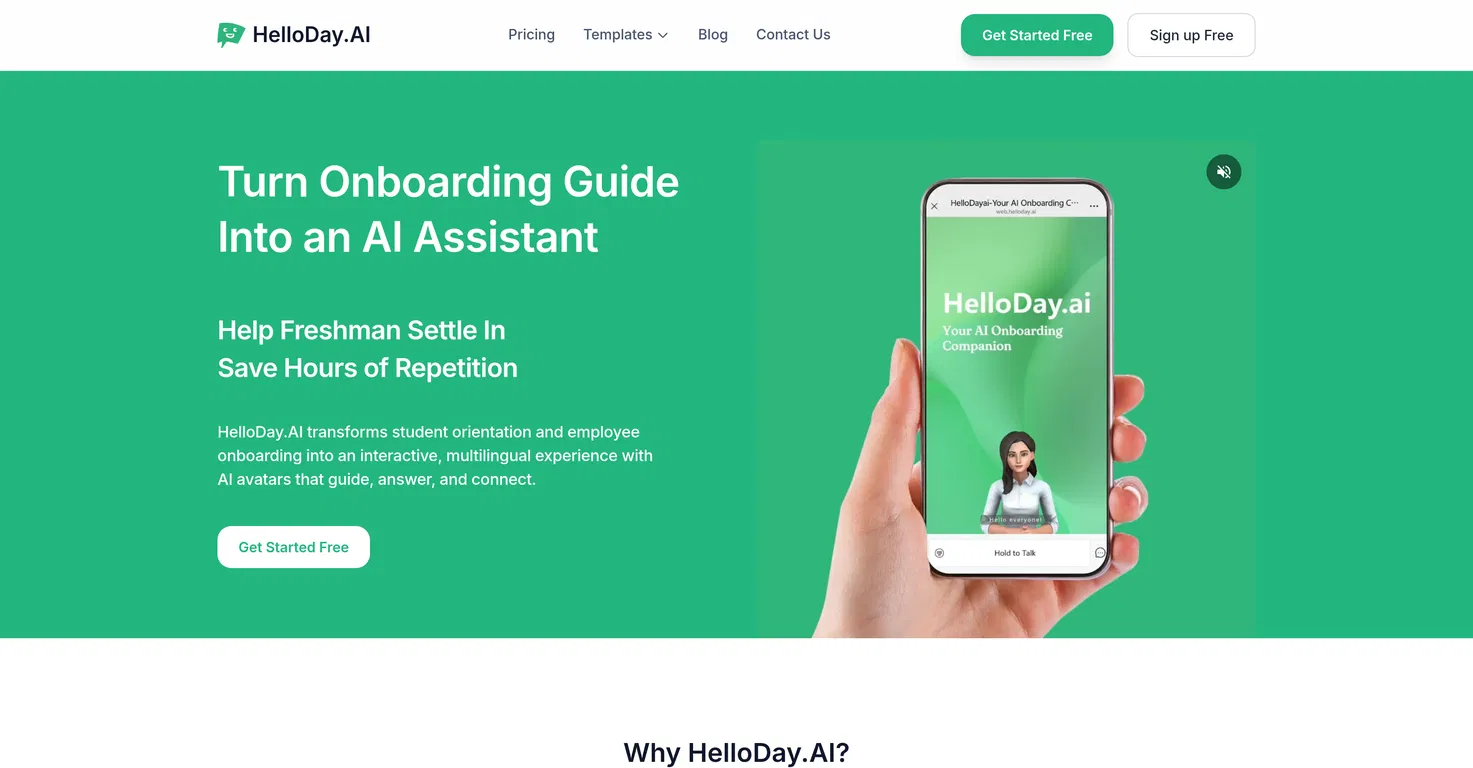 HelloDay.ai - это платформа для ориентации, работающая на основе искусственного интеллекта и призванная революционизировать процессы ориентации студентов и оформления сотрудников на работу. Инструмент использует аватары ИИ для создания интерактивного многоязычного опыта для новых пользователей, превращая ранее статичные процессы в динамичные, увлекательные сессии.