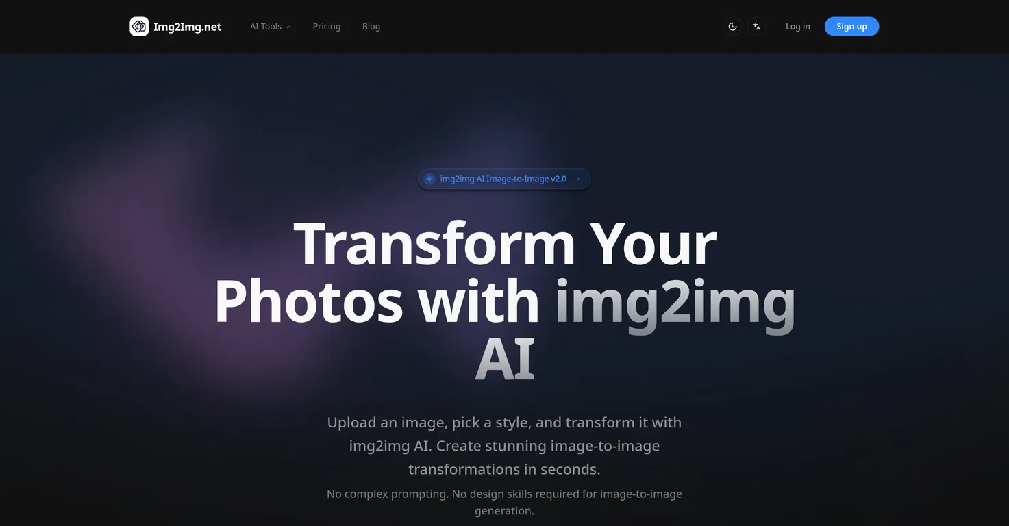 Img2Img.net's img2img AI Image-to-Image Generator - это инструмент, который использует искусственный интеллект для преобразования изображений с помощью различных предустановленных стилей.