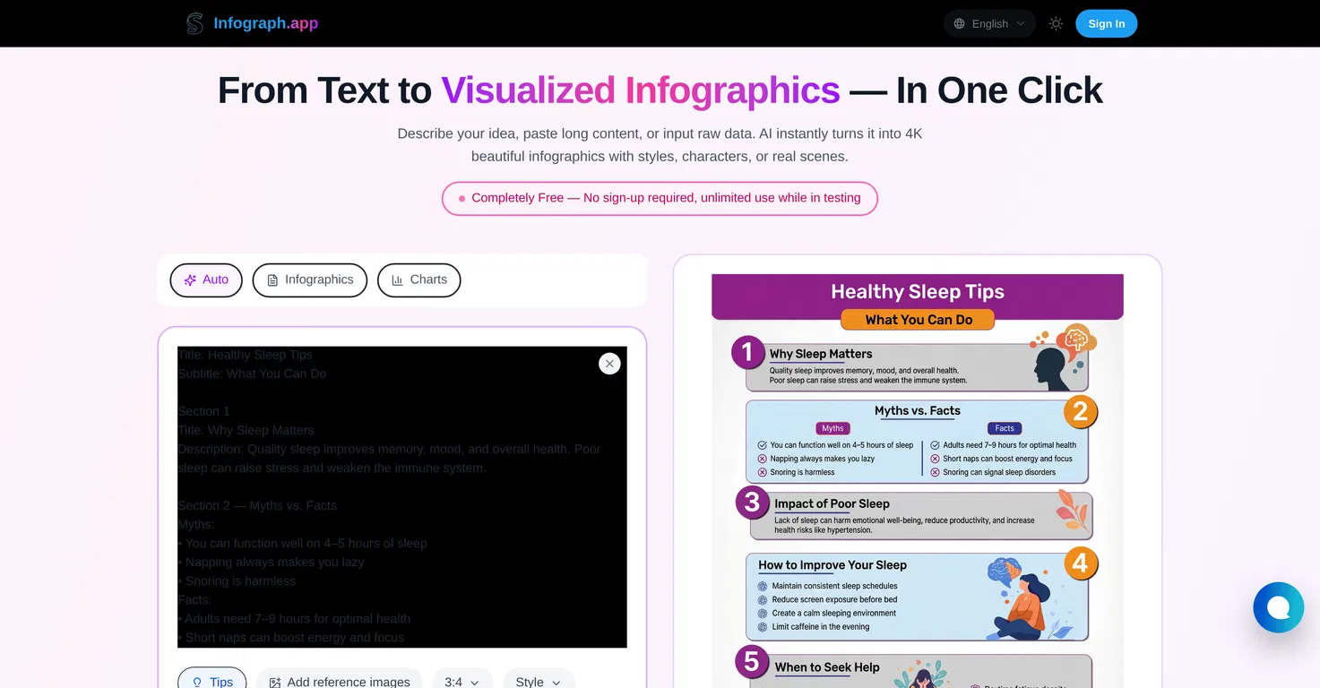 AI Infographic Generator — это инструмент на базе искусственного интеллекта, который автоматически создает инфографику на основе текстовых данных, предоставленных пользователем. Этот инструмент может преобразовывать идеи, длинные тексты и необработанные данные в визуальные элементы в форме инфографики.