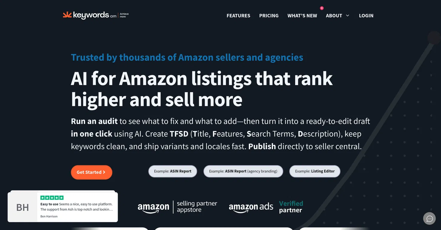 Keywords.am - это инструмент на базе искусственного интеллекта, предназначенный для владельцев брендов Amazon и продавцов FBA для оптимизации объявлений о товарах. Он помогает улучшить ранжирование по ключевым словам и повысить конверсию, чтобы увеличить продажи.