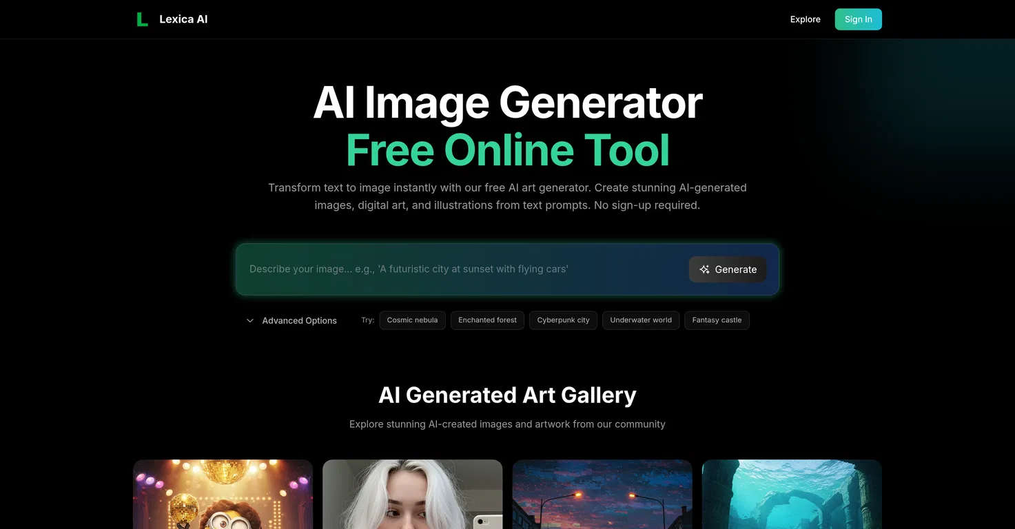 В целом, Lexica AI Image Generator Tool - это надежный, удобный и продвинутый инструмент, идеально подходящий для тех, кто ищет услуги по созданию изображений. Его структура такова, что он точно интерпретирует введенные пользователем данные и с помощью искусственного интеллекта превращает критерии в уникальные, релевантные изображения.