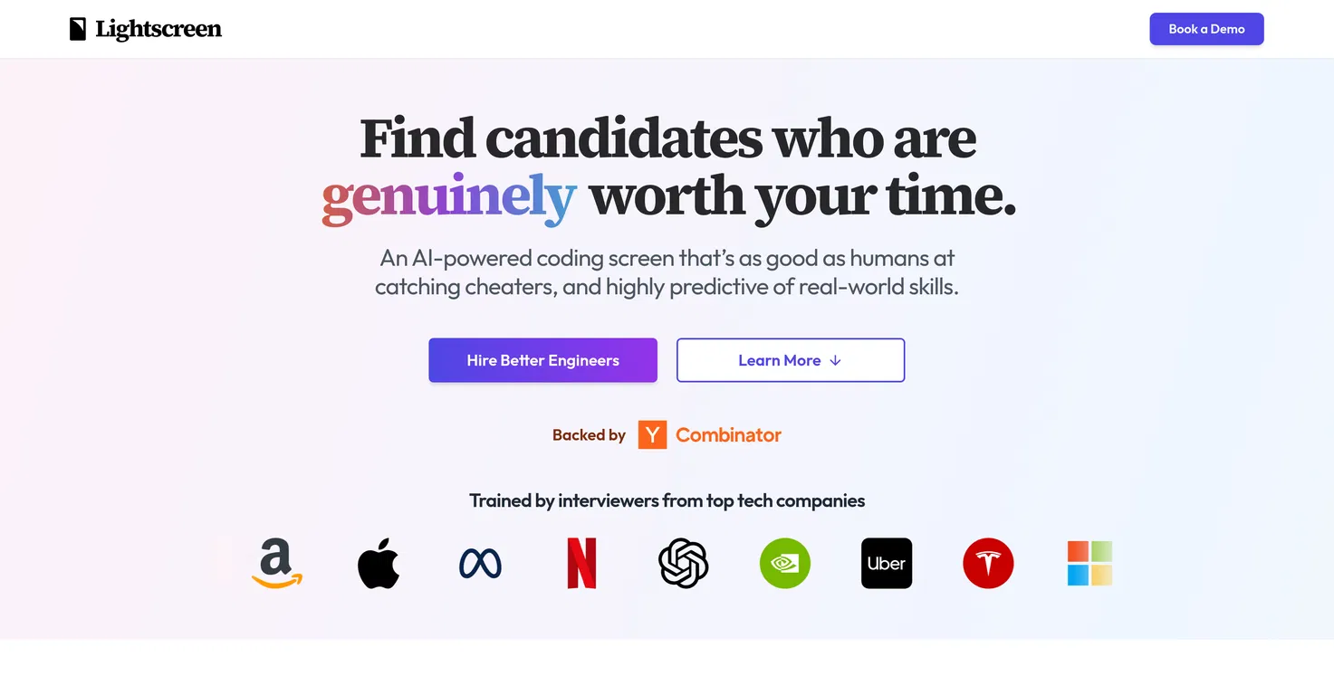 Lightscreen также оснащен функциями, препятствующими мошенничеству. Инструмент использует современный искусственный интеллект для выявления признаков мошенничества, включая поведенческие модели, связанные с нечестными действиями, что гарантирует наличие у кандидатов подлинных навыков.