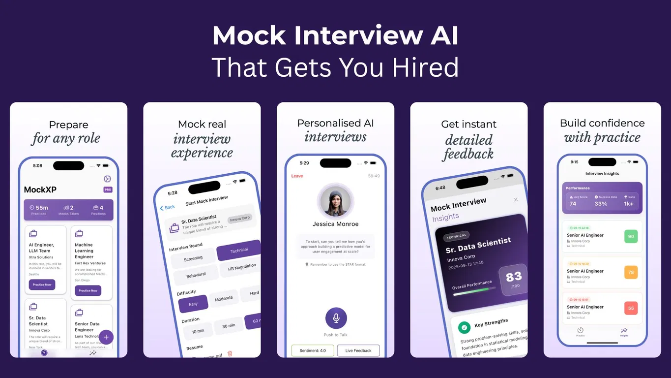 Собеседования вознаграждают за подготовку, а не за давление. MockXP превращает хаотичную практику в повторяющуюся, укрепляющую уверенность рутину. Быстро, умно и действительно полезно.