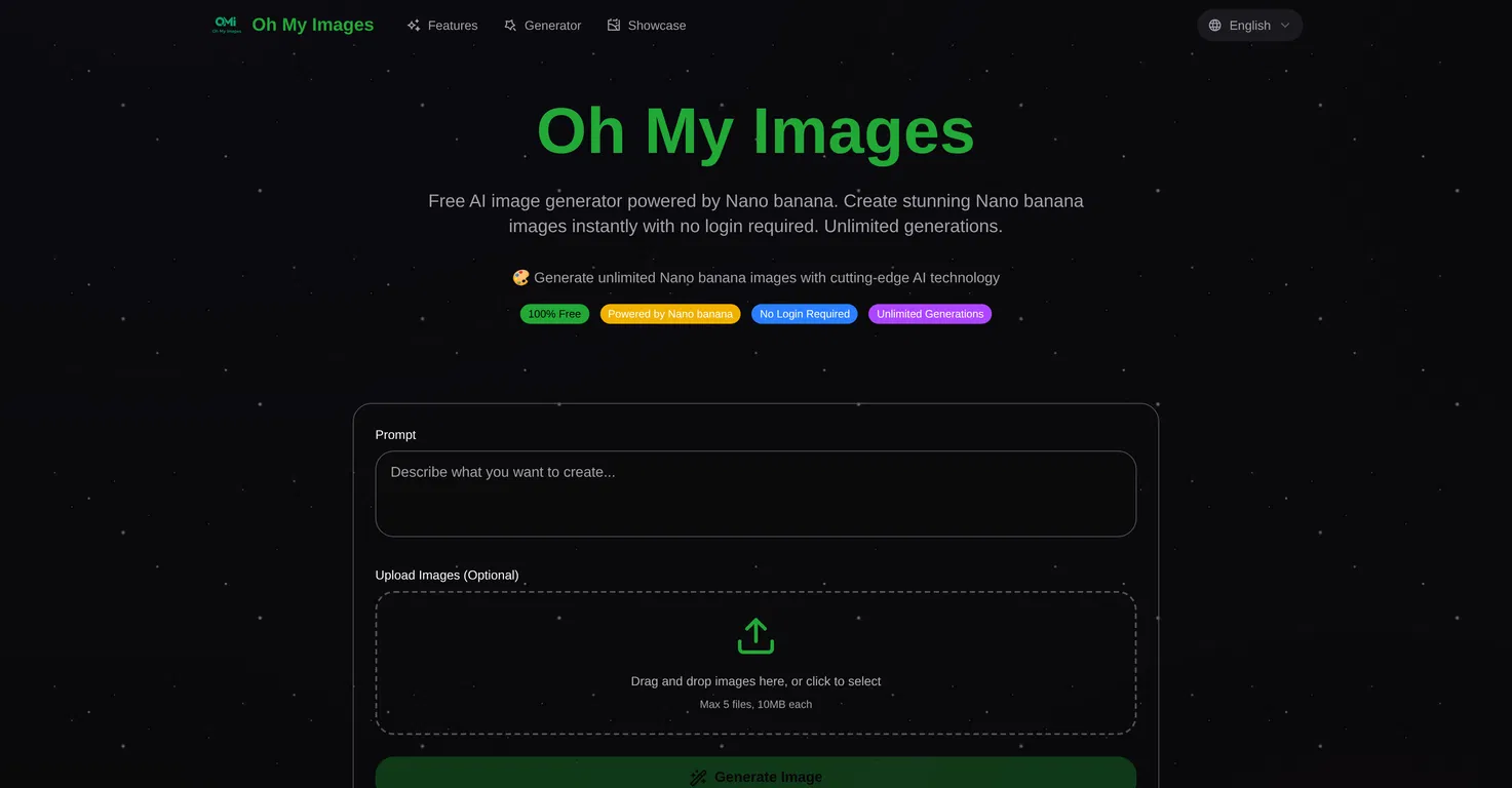 Oh My Images - это веб-инструмент, использующий искусственный интеллект для создания высококачественных изображений, вдохновленных "нано-бананами". Как пользователь, вы просто предоставляете текстовую подсказку, в которой подробно описываете тип изображения "нано-банана", которое вы хотите создать.