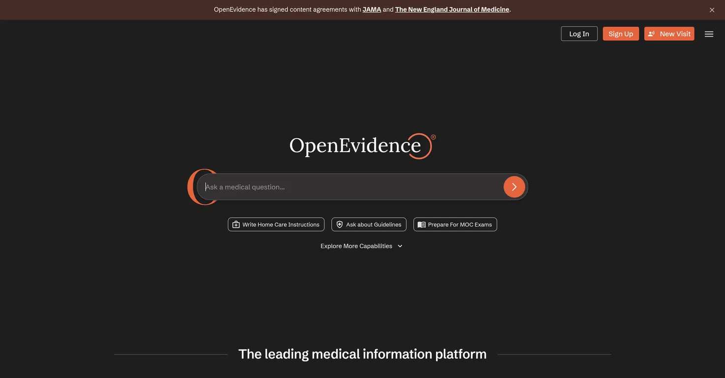 OpenEvidence - ведущая платформа, предоставляющая медицинскую информацию. Разработанная в рамках программы Mayo Clinic Platform Accelerate, она содержит мультимедийные и клинические данные из авторитетных медицинских журналов, включая The New England Journal of Medicine и JAMA, а также сеть специализированных журналов.