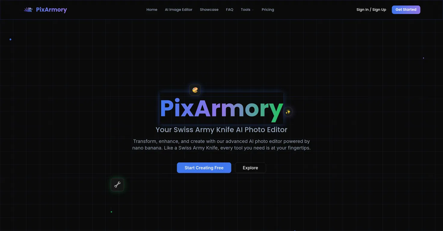 PixArmory - это редактор изображений с искусственным интеллектом, использующий передовую технологию ИИ, называемую "нанобананом", и предлагающий широкий набор функций и инструментов для редактирования.