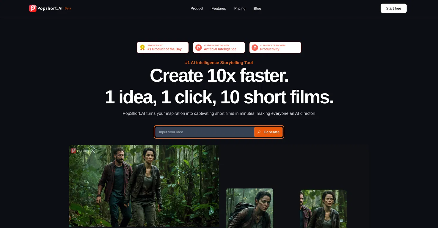 PopShort.AI - это инструмент искусственного интеллекта, который позволяет пользователям быстро и эффективно создавать увлекательные короткометражные фильмы. Используя передовые технологии искусственного интеллекта, он автоматически генерирует видеосценарии и раскадровки на основе творческих идей пользователей или описаний сцен.