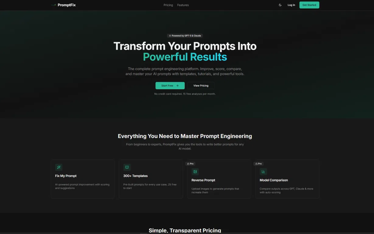 Будь вы новичок, изучающий разработку подсказок, или профессионал, оптимизирующий сложные рабочие процессы, PromptFix предоставит вам инструменты, необходимые для освоения взаимодействия с искусственным интеллектом.