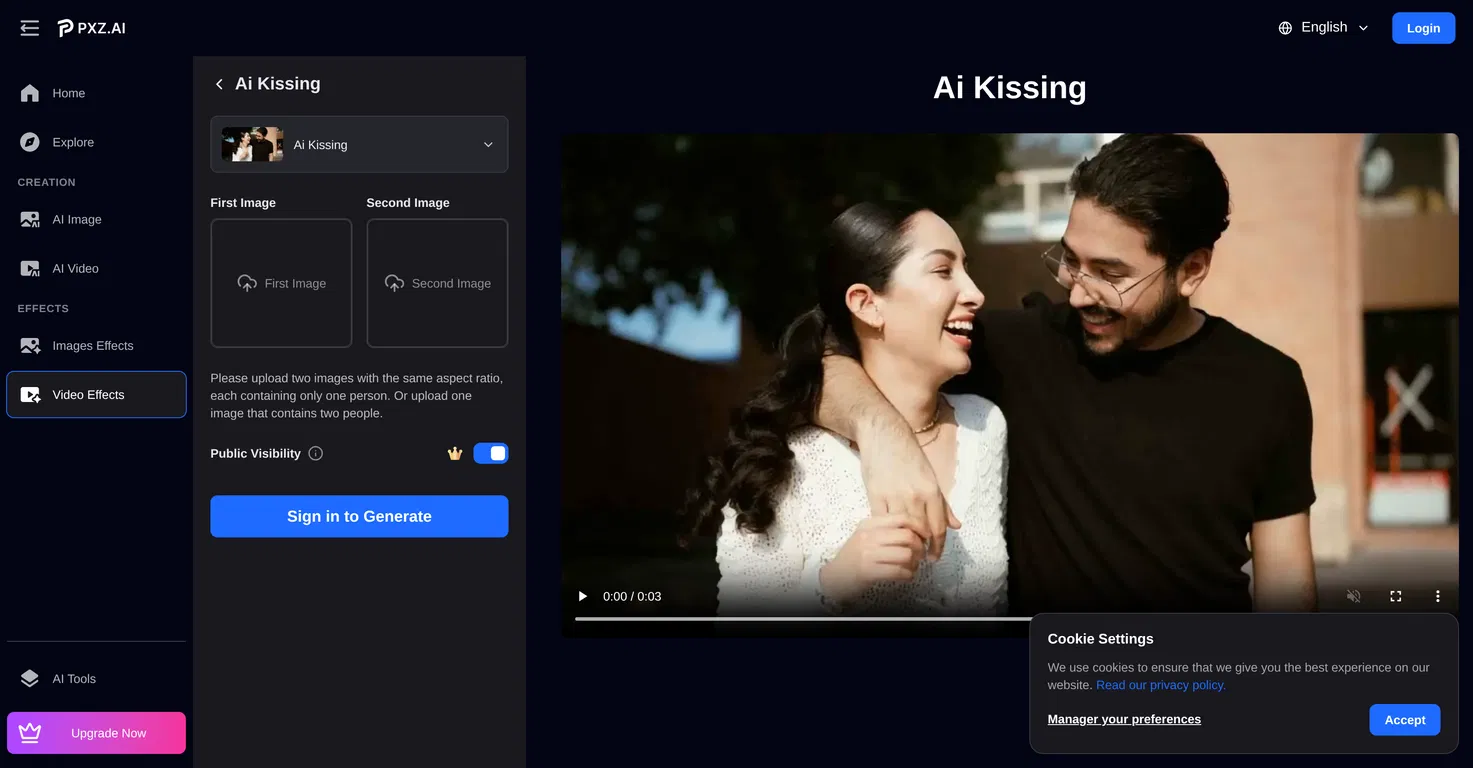 Он также оснащен отдельными режимами для создания стилизованных изображений поцелуев в стиле аниме или мультфильмов. Что касается безопасности и конфиденциальности, то все загруженные фотографии обрабатываются в безопасной среде и не хранятся после генерации.
