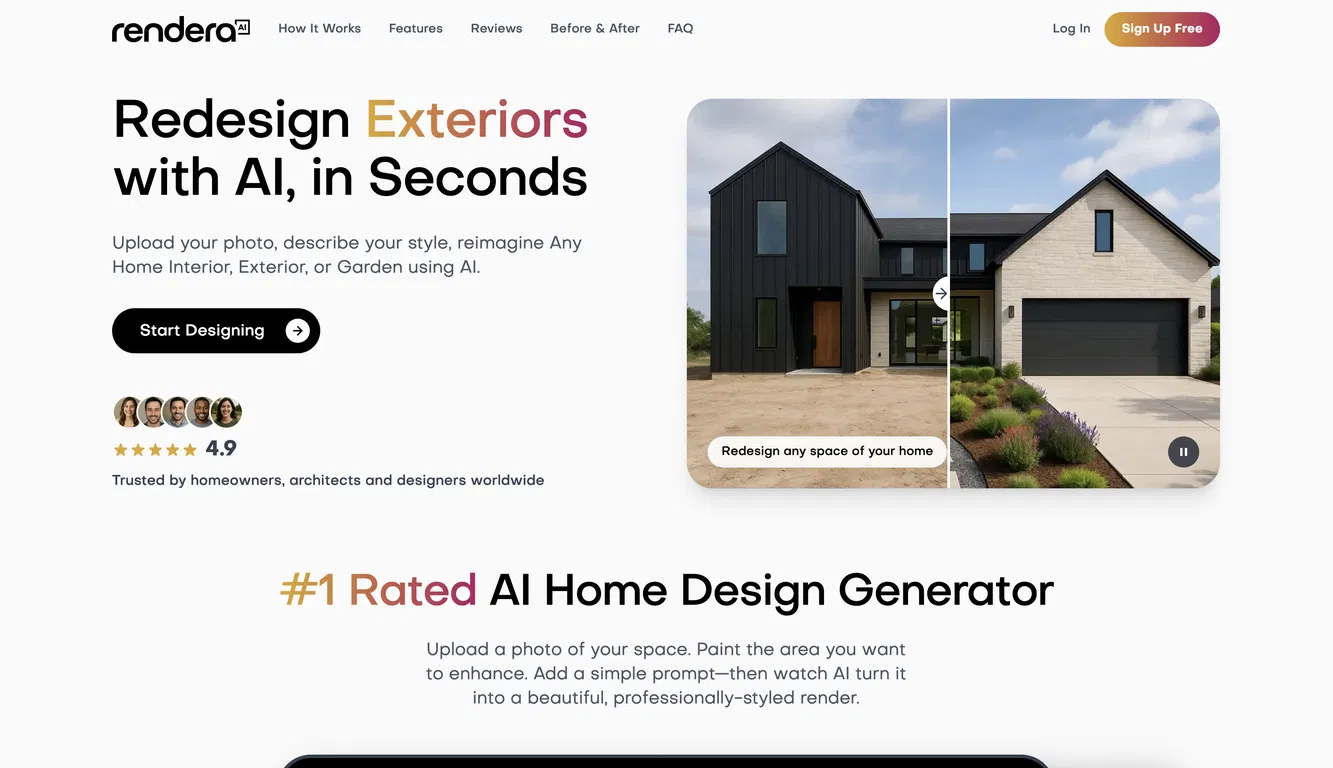 От превращения грубых эскизов в готовые для клиента визуальные образы до воплощения идей ландшафтного дизайна с учетом особенностей региона - Rendera AI позволяет пользователям принимать уверенные дизайнерские решения. Благодаря цене за использование и отсутствию требований к подписке, это гибкое решение для личных и профессиональных проектов.
