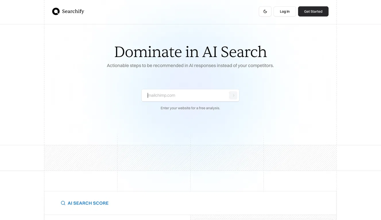Searchify - это инструмент искусственного интеллекта, направленный на повышение видимости бренда в ответах ИИ путем мониторинга показателей по сравнению с конкурентами и предоставления действенных рекомендаций по улучшению показателей поиска ИИ.