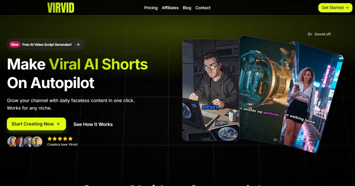 Virvid — это универсальный инструмент на базе искусственного интеллекта, который генерирует короткие видео для создателей контента, компаний и цифровых маркетологов. Эта платформа преобразует идеи в популярные короткие видео для таких платформ, как TikTok, Instagram Reels и YouTube.