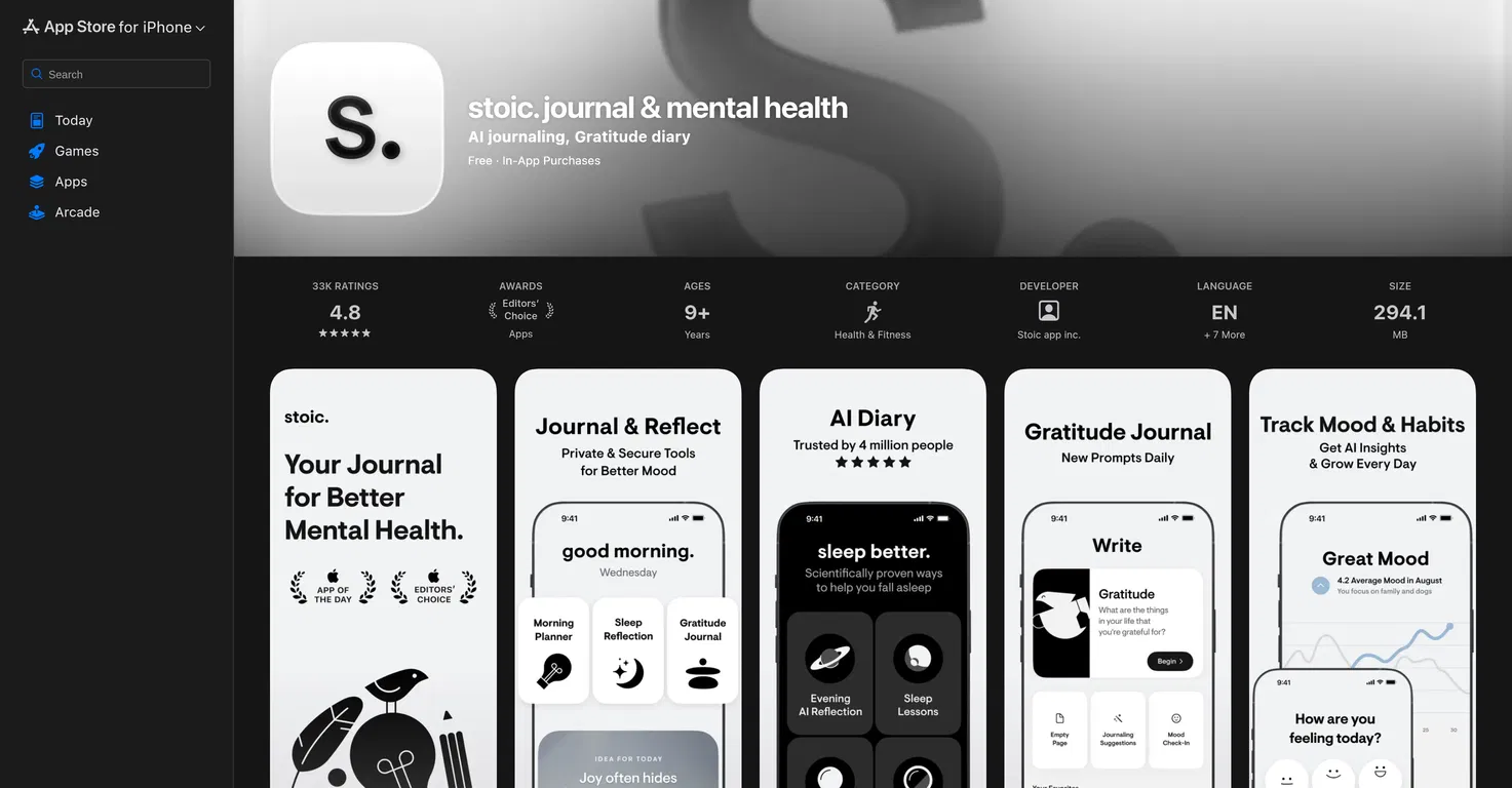 Разработанное компанией Stoic app inc., это приложение служит помощником в области психического здоровья, помогая пользователям понимать свои эмоции и предлагая идеи о счастье, продуктивности и преодолении препятствий.