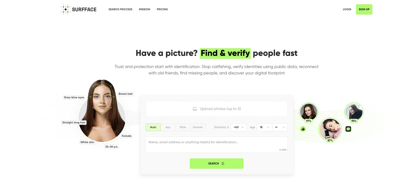 Surfface AI позволяет найти двойников, восстановить связь со старыми друзьями, подтвердить личность в приложениях для знакомств и помочь в журналистских расследованиях.