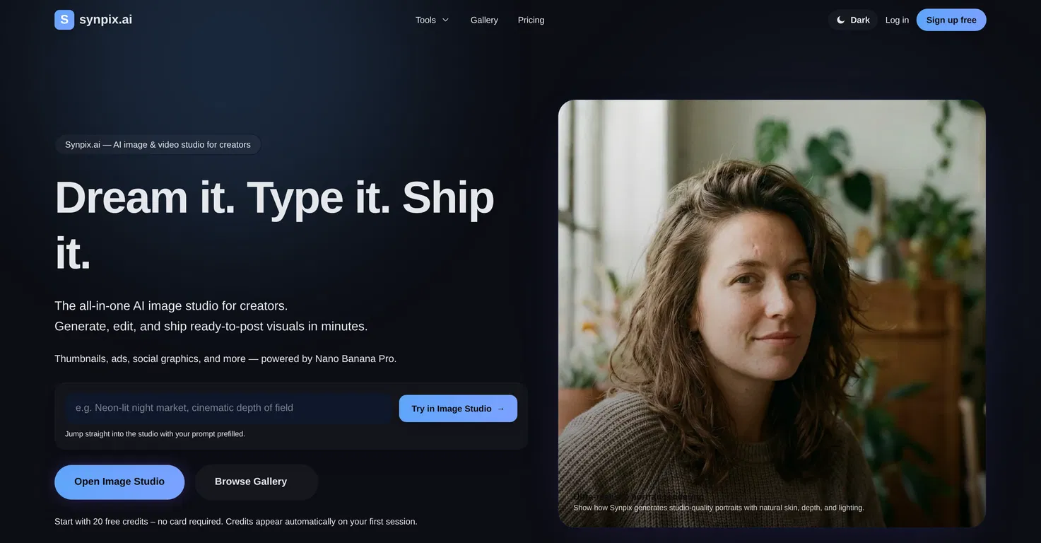 Nano Banana от Synpix - это всеохватывающая студия искусственного интеллекта, созданная для творцов. Платформа позволяет пользователям создавать, редактировать и публиковать готовые к размещению визуальные материалы в течение нескольких минут.