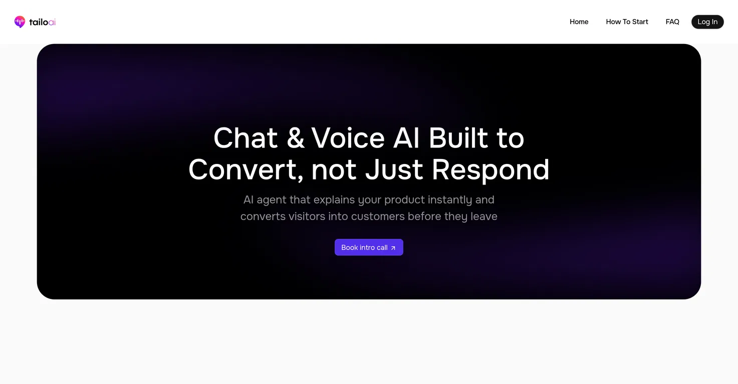 Tailo - это инструмент голосового искусственного интеллекта, предназначенный для взаимодействия с посетителями веб-сайтов, создания персонализированных предложений продуктов на основе их болевых точек с целью конвертации посетителей в клиентов.