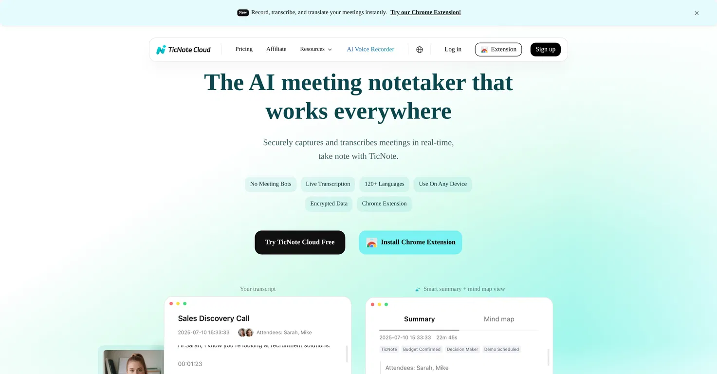 TicNote Cloud - это платформа для заметок совещаний с искусственным интеллектом, которая помогает командам оставаться организованными и двигаться быстрее: записывайте совещания, получайте высокоточные стенограммы и превращайте разговоры в полезные резюме, не меняя при этом способа ведения переговоров.