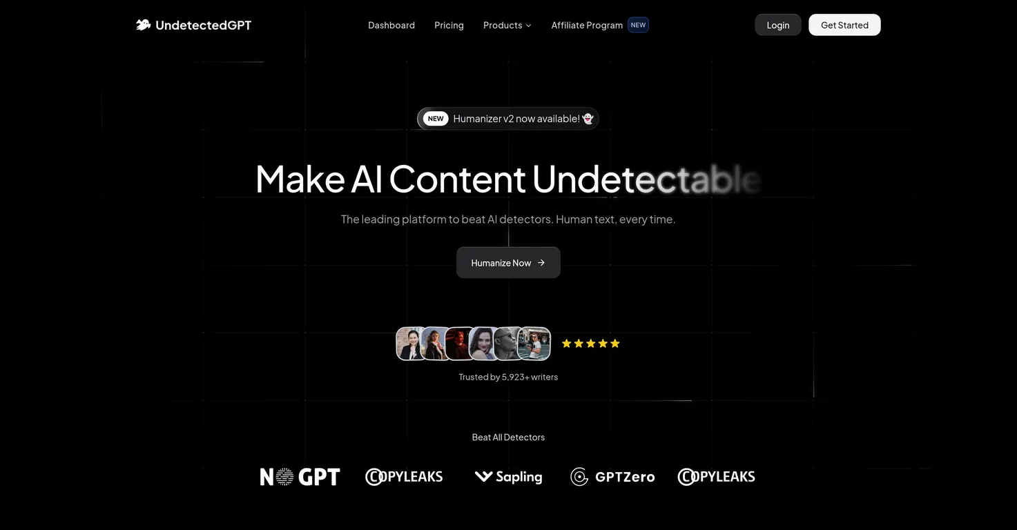 UndetectedGPT - это платформа для обхода обнаружения ИИ, которая специализируется на создании необнаруживаемого ИИ-контента. Платформа предлагает широкий спектр инструментов, таких как AI Humanizer, AI Stealth Writer и AI Detector.