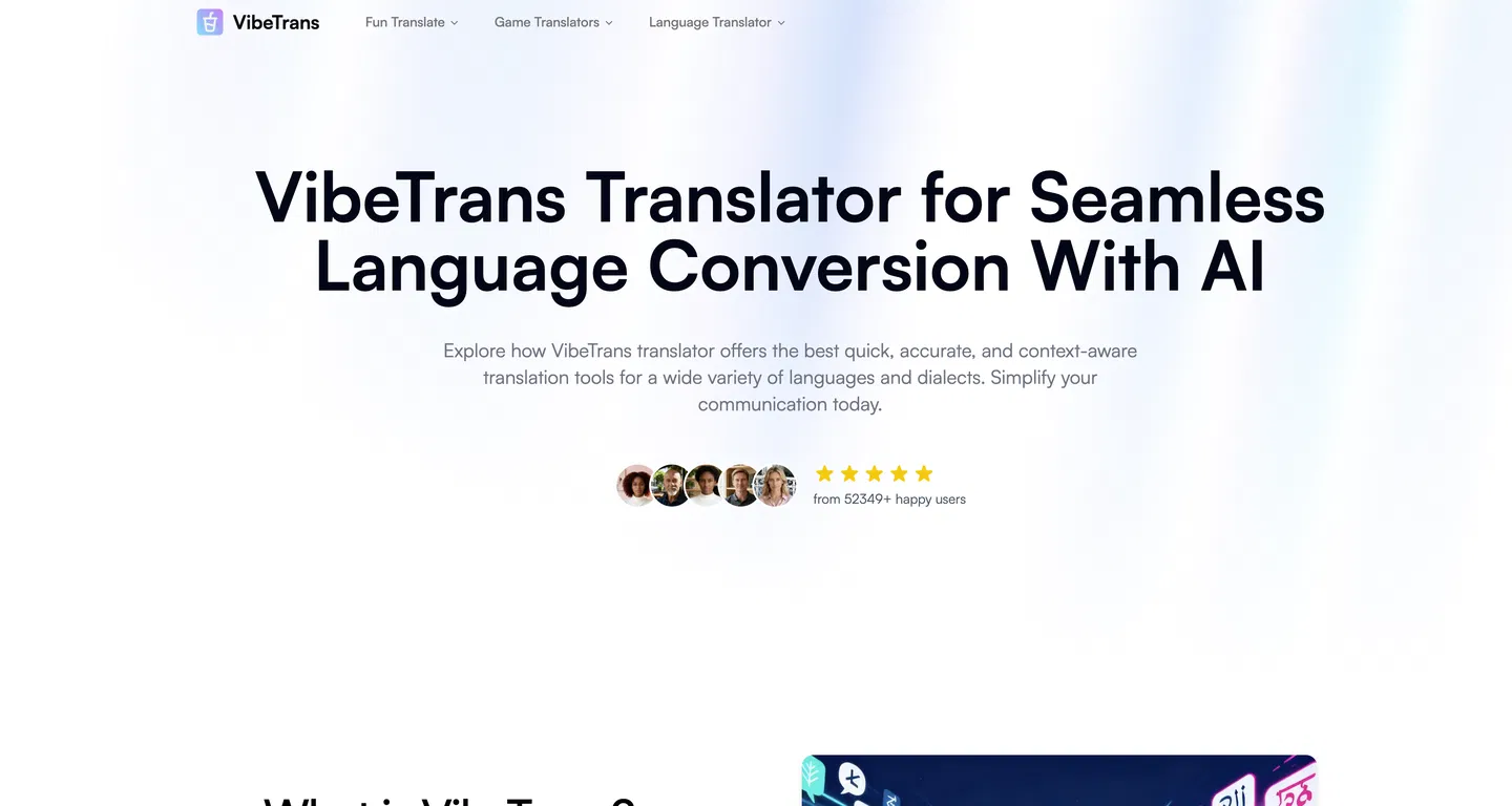 VibeTrans - это платформа на базе искусственного интеллекта, которая разрушает языковые барьеры, предоставляя передовые услуги перевода. Она предлагает точные переводы в режиме реального времени и с учетом контекста, что делает ее подходящей как для профессионального, так и для повседневного общения.