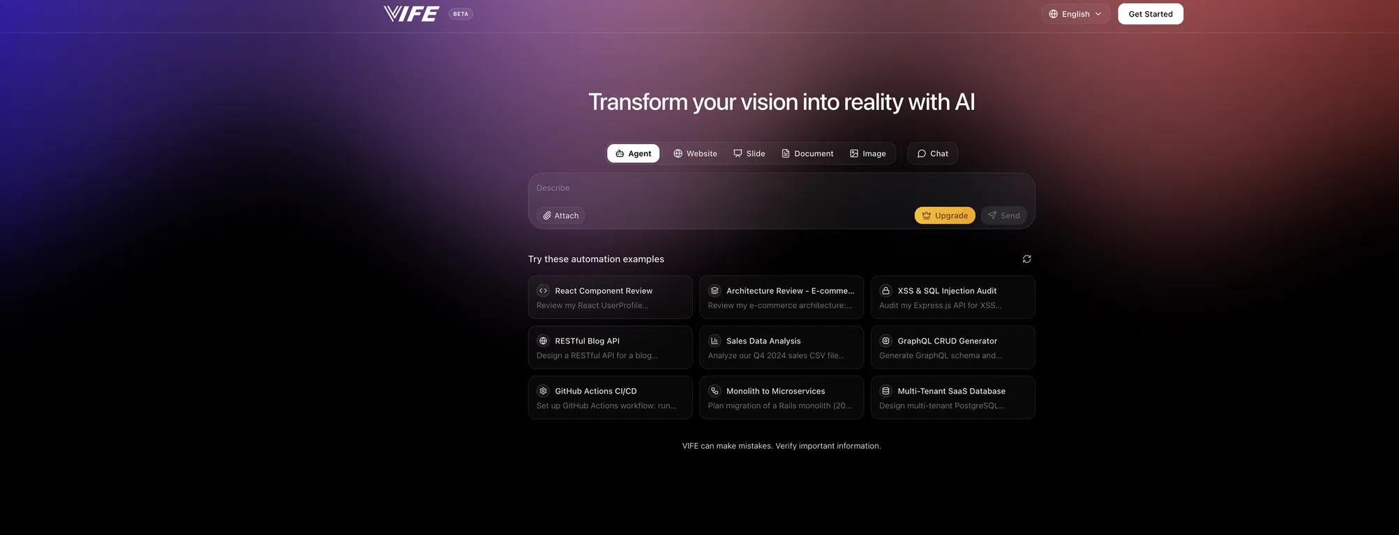 VIFE выходит за рамки типичного интерфейса чата и позволяет автономно создавать презентации, документы и полнофункциональные веб-сайты. Он имеет широкий спектр применения, включая анализ данных о продажах, проектирование архитектуры микросервисов для платформ электронной коммерции, интеграцию различных API-функций в ваши приложения, исправление ошибок и тестирование.