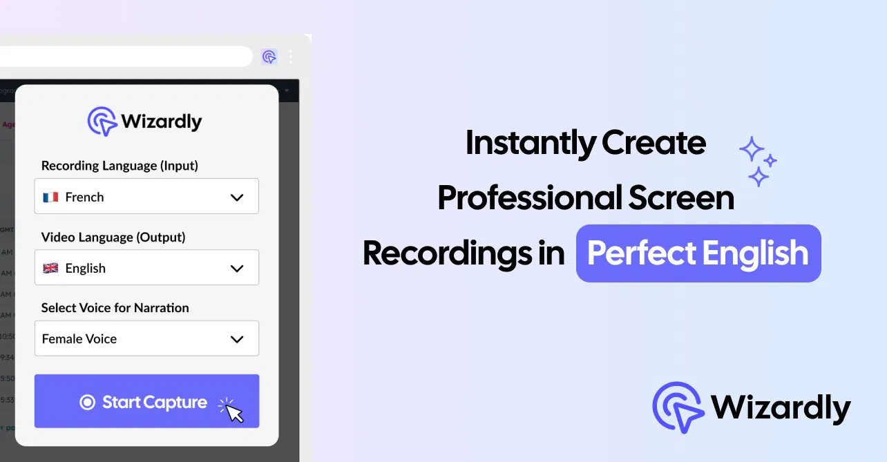 Wizardly — это первый в мире экранный рекордер на базе искусственного интеллекта, который помогает командам превращать быстрые записи в отполированные, готовые к показу клиентам видео. С помощью расширения Wizardly для Chrome, которое устанавливается одним щелчком мыши, вы просто записываете видео или рабочий процесс, как обычно, даже на своем родном языке, а Wizardly автоматически генерирует отполированный сценарий и профессиональный голос за кадром.