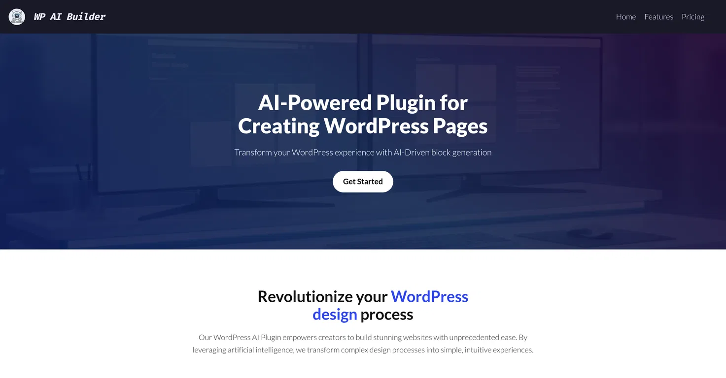 WP AI Builder — это мощный плагин на базе искусственного интеллекта для создания сложных страниц WordPress. Используя искусственный интеллект, он упрощает дизайн WordPress, превращая сложные процессы в интуитивно понятные действия.